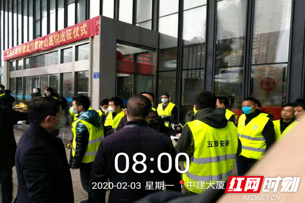 湖南华远装饰有限公司党支部援建武汉雷神山医院集合现场。