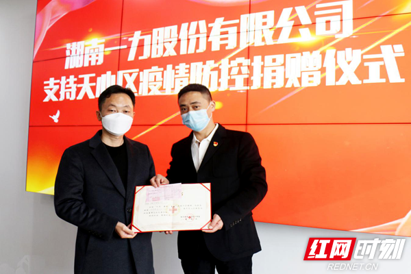 红网时刻2月28日讯(通讯员 吴雅 张健)2月27日上午,在湖南一力股份有限公司会议室,公司执行总裁李拥军从长沙市天心区黑石铺街道相关负责人手中接过了“捐赠纪念书”。