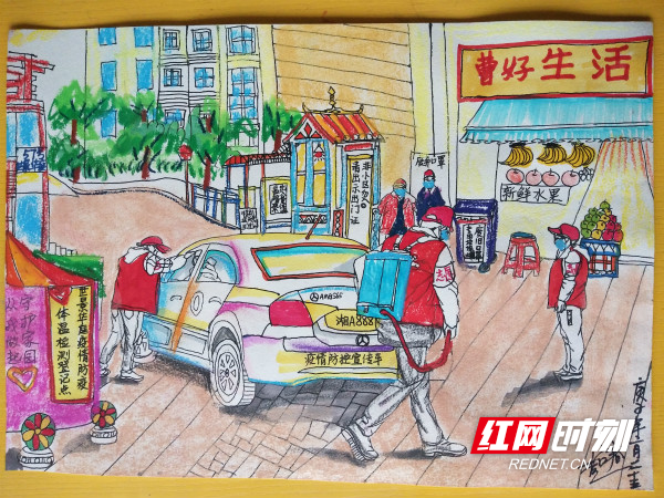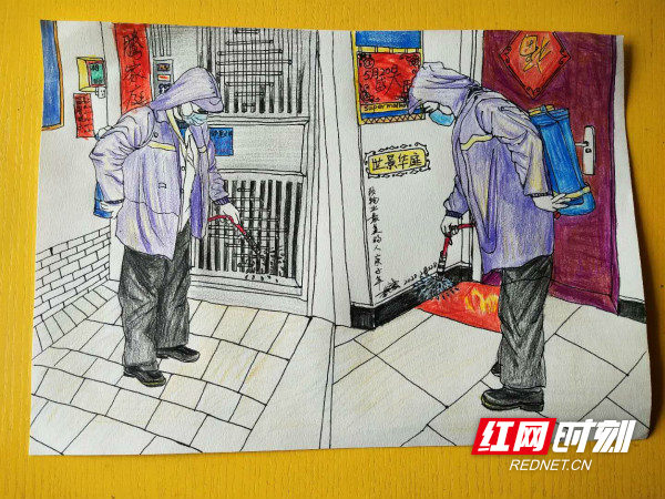 看到社区一线参与疫情防控的工作人员不分昼夜的奔忙与守护,看到小区旁湘雅博爱医院家属们送医护人员踏上支援武汉的征程,长沙县湘龙街道湘郡社区居民向春香深受感动,她拿起手中的画笔,画出社区齐心协力战“疫”的一个个动人瞬间,近日,一组名为《战“疫”,暖城》的漫画在湘龙街道受到热捧。