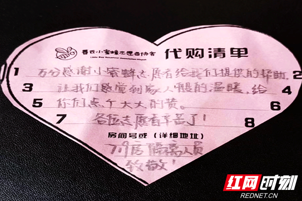 “万分感谢小蜜蜂志愿者给我们提供的帮助,让我们感觉到家人般的温暖,给你们点个大大的赞。各位志愿者辛苦了!”除了一张张需求清单,勤劳的“小蜜蜂”有时也会收到类似上面的感谢清单,这让志愿者心中暖暖的。