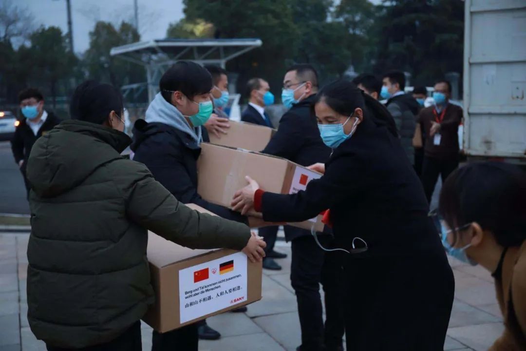 在国内疫情最严峻的时期,德国伙伴们第一时间捐钱捐物,四处寻找最急缺的防护服、口罩等物资,包机发回湖南。