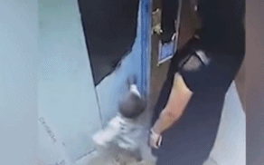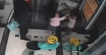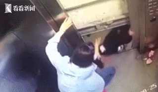 事故5:这个小女孩也被困在了电梯里,但她一直试图在扒门,看得人后背发凉,要是电梯突然动了,小女孩很可能也会突然坠下电梯井。