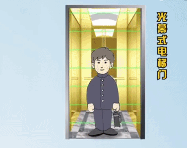 光幕式电梯门,通过红外线检测物体,感应到了电梯门会弹开;
