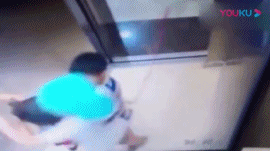 事故3:这个小男孩是一直在拿雨伞和电梯门玩,在危险边缘不断试探,雨伞直接被门夹到了天花板上。幸好最后电梯停在了30楼,并没有发生其他事故。