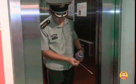 下图是公安人员的示范,模拟手指放在电梯门中间,电梯没有感应到,直接关门了: