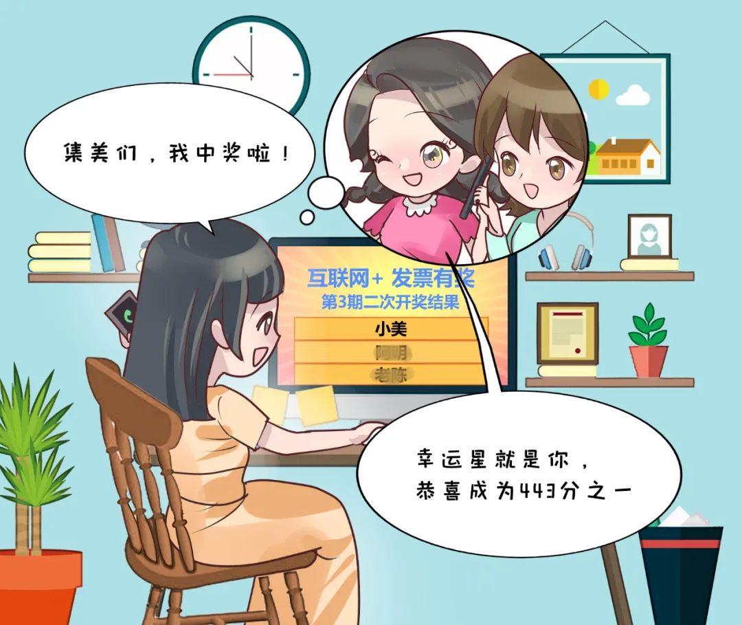 消费者可以通过一次开奖结果页面,选择参与二次开奖;或参与一次开奖后,通过有奖发票系统主界面“个人信息录入”模块录入个人信息并参与二次开奖,开奖时间为每个自然月结束后第10天(遇法定节假日顺延),最高奖金50000元。