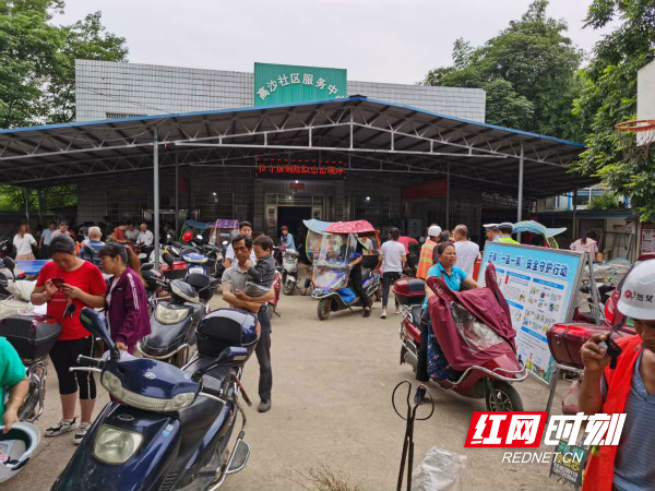 为加强辖区电动摩托车管理,提升交通安全意识,打造文明有序的出行环境,同时免去居民自己办理来回跑带来的不便,从5月27日开始,长沙县湘龙街道行政审批办联合湘龙交警中队分批开展“交通问题顽瘴痼疾整治工作及‘一盔一带’安全守护行动”进社区系列活动。
