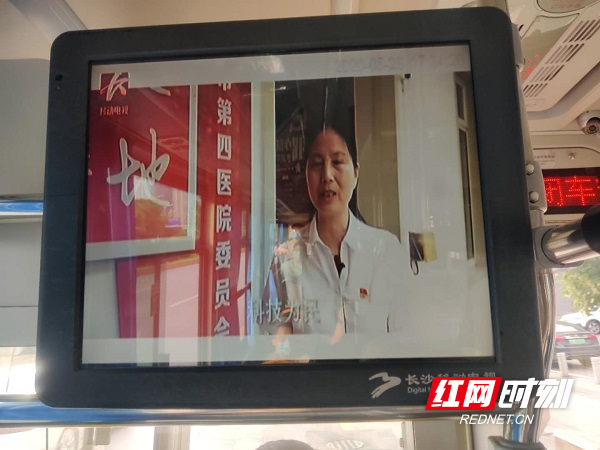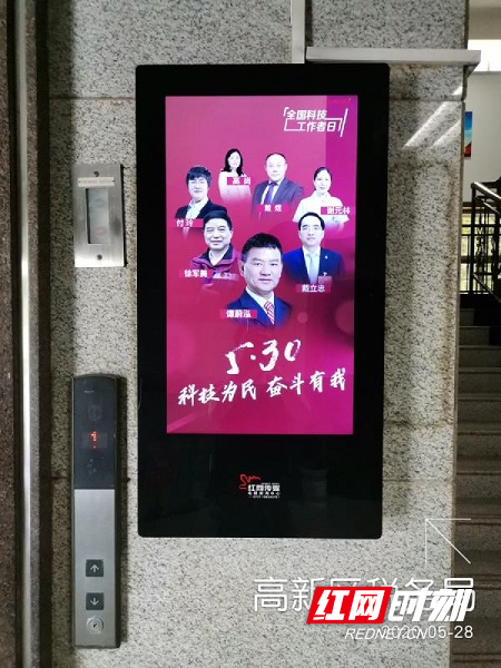 位于长沙五一广场锦绣中环的户外大屏滚动播放“科技工作者”。