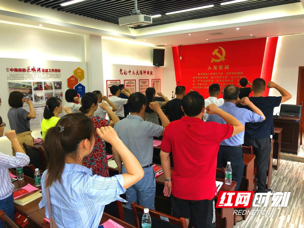 随后一行人来到中南商圈党群服务中心,一份由服务中心用心准备的“红色大礼包”就送到了每位党员手中,里面包含党章、党徽、红色学习资料等;一堂精心准备的优秀企业家党员党课,在响亮的入党誓词中拉开序幕,两新企业党员们齐聚一堂,上党课、忆初心、谋发展。