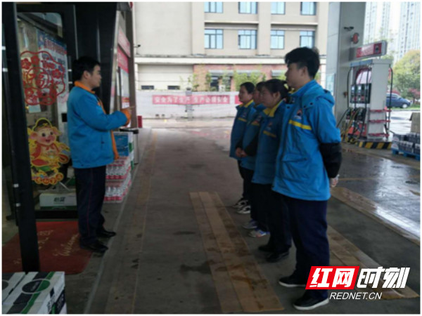 金诚加油站在开展班前会。