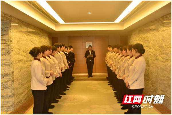 隆华大酒店在开展班前会。
