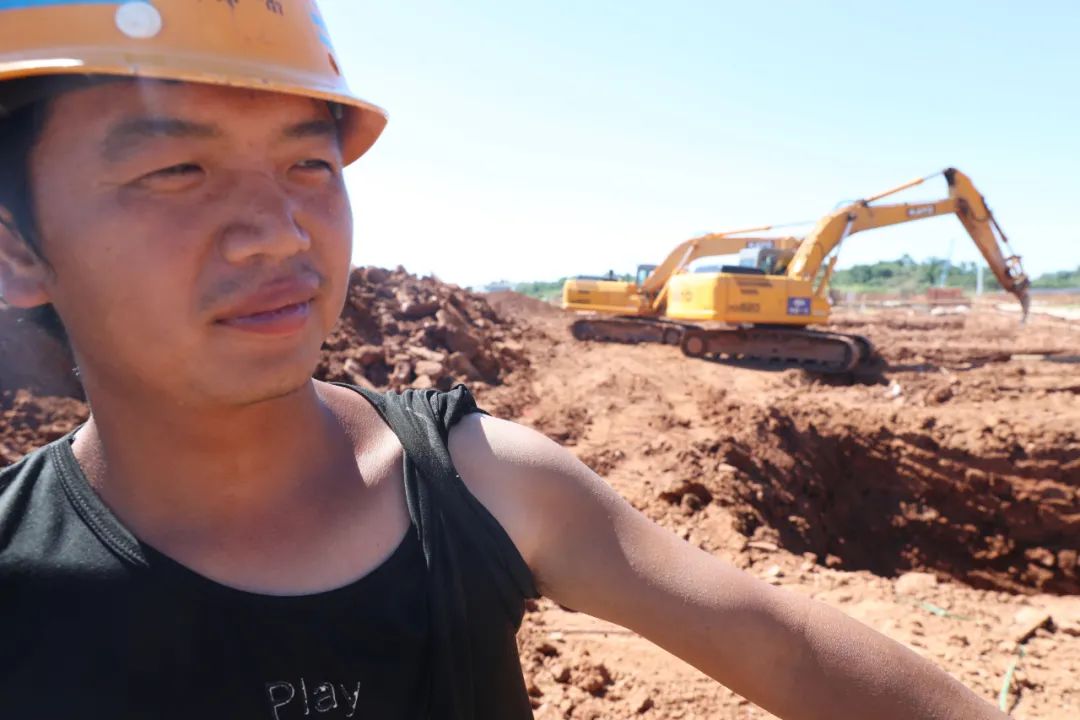 轰鸣的推土机忙碌有序,来回穿梭的重型卡车日夜兼程,偌大的工地上,精力充沛的施工人员正在紧张地施工。