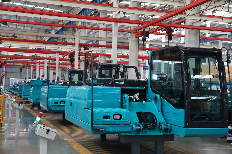 图为山河智能新厂区山河智能工业城挖掘机生产车间。