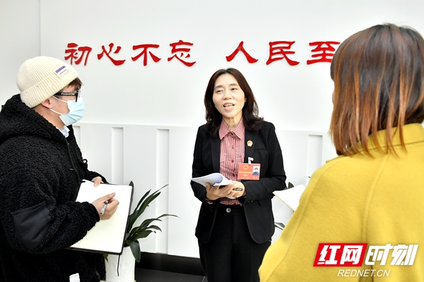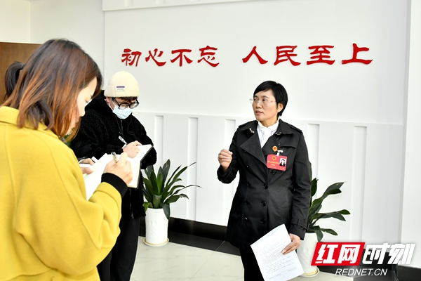天心区政协委员、长沙红海人力资源有限公司总经理朱艳华接受记者采访。