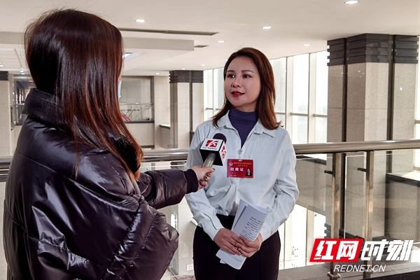 天心区人大代表、湖南开放大学应用技术学院教授彭瑛接受记者采访。
