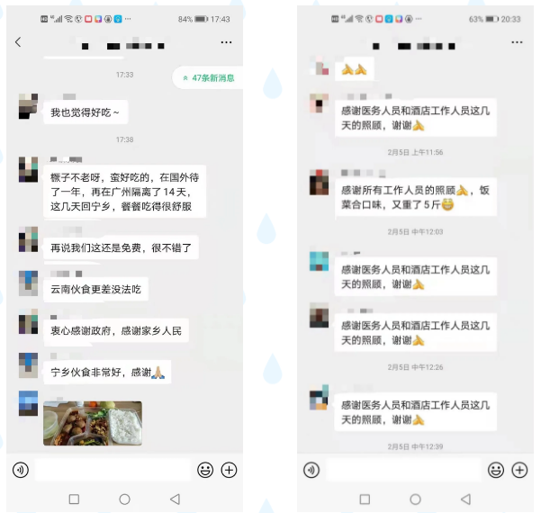 “这里就像一个温暖的大家庭,隔离微信群里,工作人员会定期发送问候语,普及防护知识,提醒相关事宜。只要我们有需求,在微信群里提出来,医护人员总是第一时间想办法帮我们解决。”隔离人员刘阿姨表示,“刚到观察点时,有些紧张和担忧,医生和护士都很关心我,像家人一样照顾我,我的情绪很快就舒缓下来了。”