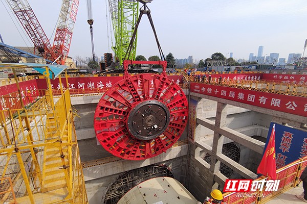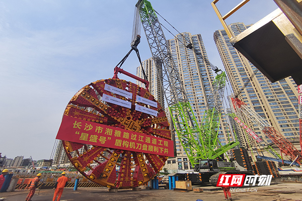 红网时刻长沙2月21日讯(记者 彭超 通讯员 周轶群)今日下午,随着650吨履带吊吊起500吨的“大家伙”深入37米地下,长沙城发集团湘雅路过江通道项目“星盛号”盾构机刀盘开始安装。