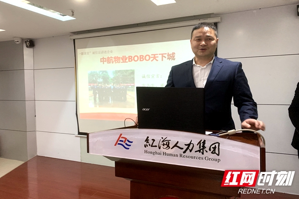 宣讲会上,特别邀请诚实守信“湖南好人”、天心区第三届道德模范易军宣讲诚信故事。讲述中,易军传递了自己“诚信经营,品质至上”的经营观,并分享了九年以来坚持好食材、用心服务食客的故事。湖南红海人力资源有限公司副总经理张赛君则讲述了企业经营过程中好的经验做法,以及员工们弘扬雷锋精神的实际做法。