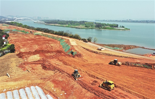 3月24日,长沙湘江新区,潇湘大道三段防洪工程土方作业正酣。目前,项目已完成两处雨水箱涵回填工作,以满足春季防汛需求。 该防洪工程北起巴溪大道、南至湘潭九华分界处,全长约5.7公里,是长沙市“一江两岸”重要组成部分。建成后将大大提升湘江西岸的防洪能力,完善大王山片区防洪排涝体系,预计今年年底基本完工。