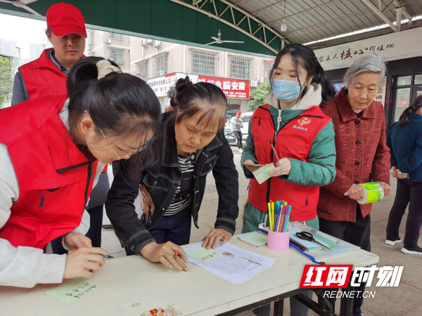 社工带领20名志愿者分为2个小组,一组在松雅辖区内向社区居民和商铺分发学党史及文明祭祀的宣传单页;另外一组在社区篮球场协助社工开展居民互动体验式活动,现场一片欢声笑语。“文明祭祀的方式有很多,比如不放鞭炮、鲜花祭祖、植树祭祀、签名祭祀等,这样的方式非常好,减少二氧化碳和纸张污染,更加环保和健康!”杨娭毑说道。