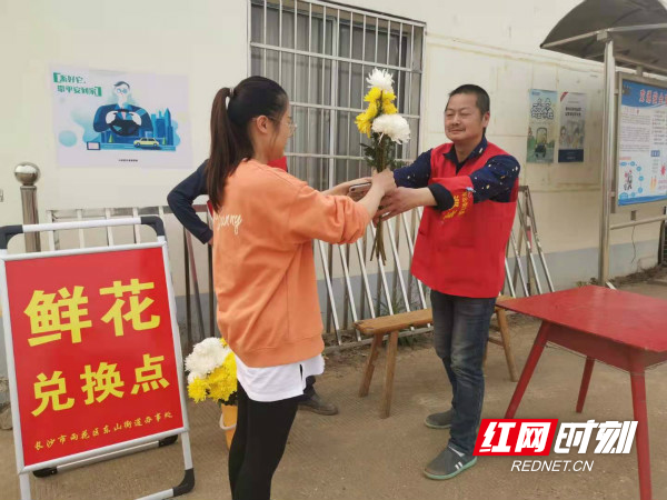 长托经济合作社网格员、护林志愿者自发组成了文明祭祀宣传队,每日在凤凰山入口处值守,用免费的新鲜菊花将前来扫墓群众手上带来的纸钱、香火换下。这一志愿者活动已经坚持开展了多年,每年都有不少村民志愿者踊跃报名。