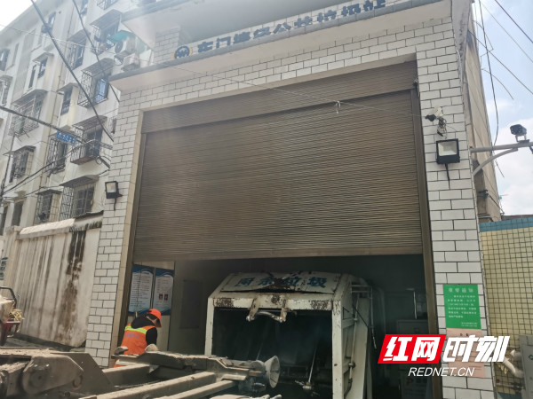 东门捷径公共垃圾站是专门处理湿垃圾的压缩垃圾站,为避免居民群众出行高峰期,垃圾站每天9点开始作业。以前垃圾都是裸露在外,气味刺鼻,容易滋生细菌,现在采用的是封闭式垃圾处理方式,当垃圾运输满后,卷闸门自动落下,待处置完再次打开,垃圾日产日清。除此以外,垃圾站还安装了自动除臭、杀菌设备,由原来每5分钟一次调至每2分钟一次,致力于建设无菌、美丽家园。