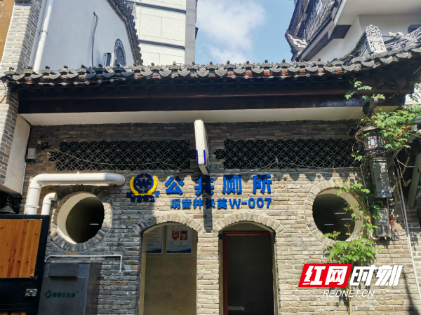 走进长沙市芙蓉区定王台街道丰泉古井社区观音井巷,最先映入眼帘的是一栋极具古典美的小楼,若不是墙壁上的提示,恐怕难以想到这竟是一个公共厕所,它背靠国金中心,却与摩天大楼形成鲜明对比,独具一格。