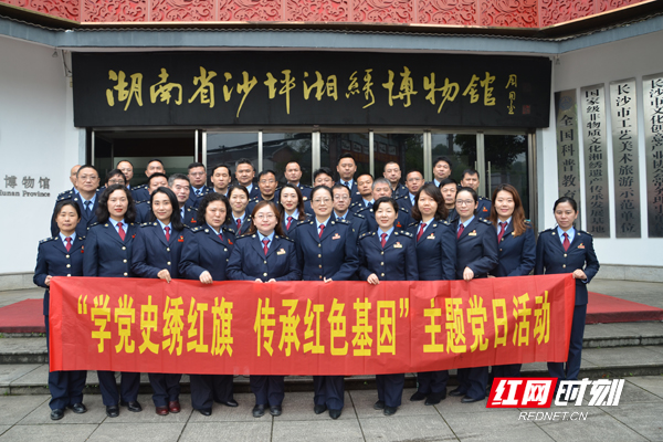 在湘绣文化博物馆,党员干部了解湘绣发展史,在党旗下重温入党誓词,聆听学习习近平总书记提出的“绣花精神”与提高党性修养的生动党课。在湘绣文化体验基地,大家拿起红绸金线绣出闪亮的党徽,用一针一线表达对党的热爱和感恩。
