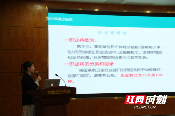 长沙县星沙医院公卫科副科长莫晴正在讲解职业病的概念