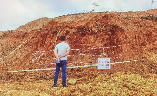 5月31日,长沙县湘龙街道五岳庙东面古墓处,山体断面上能清晰看到一些灰色小型墓砖。丁鹏志 摄