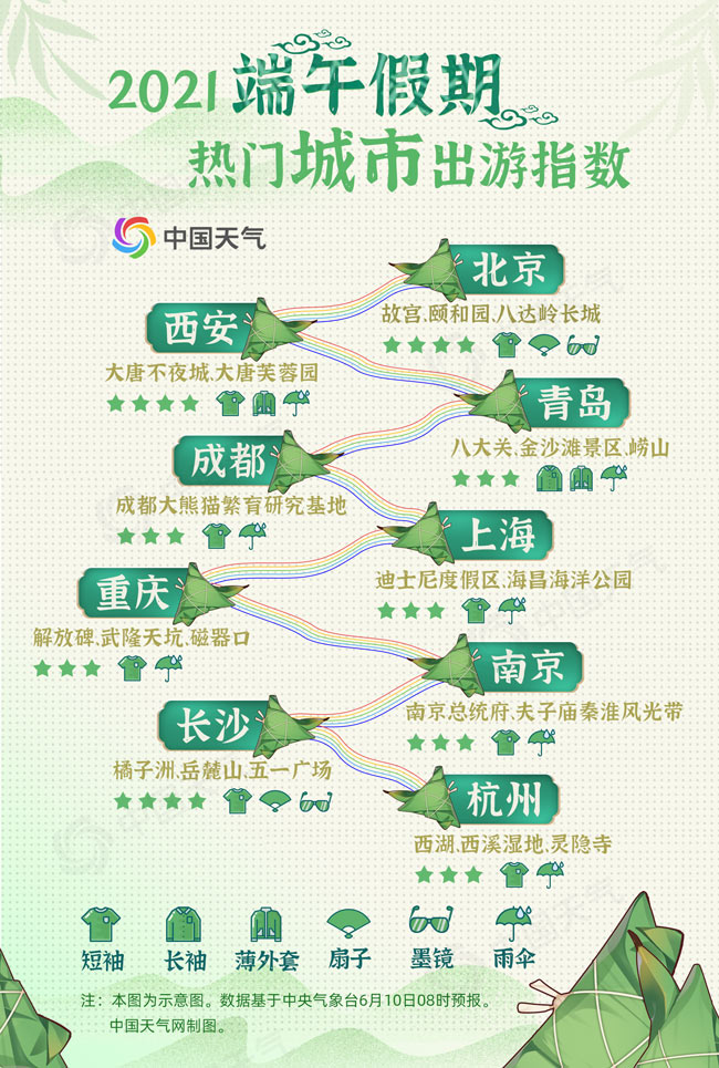 我们即将迎来端午假期。根据各大旅游网站的消息,预计今年端午小长假,居民出游热情不减,出游人次将达到1亿人次。其中,北京、上海、杭州、成都、南京、重庆、长沙、青岛、西安等地为出游热门城市。来长沙的游客这次不用为雨水烦忧,因为太阳要“C位出道”。