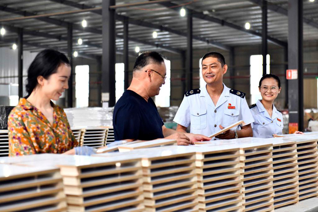 6月16日,在菏泽金然木制品有限公司,曹县税务局的工作人员上门走访,介绍出口退税