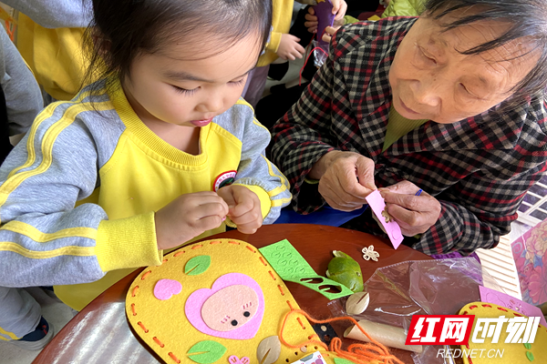 活动中,文源街道“源圈”项目社工通过视频等影像资料向参加活动的老年人及小朋友介绍了重阳节的由来,告诉小朋友尊老敬老爱老是我们中华民族的传统美德,同时借助互动环节,让尊老爱老意识在小朋友心中“生根发芽”。随后,幼儿园小朋友还为老人们表演了精彩的文艺节目,还给老人们剥橘子、送祝福。现场,一老一小结伴玩游戏、秀才艺、做手工福袋、贴树叶画、品重阳糕点,其乐融融,热闹非凡。
