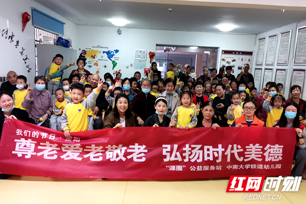 红网时刻长沙10月14日讯(通讯员 朱奎丹)橘红橙黄,金桂飘香,农历九月初九,又是一年重阳到。为进一步弘扬尊老、敬老、爱老的良好风尚,在辖区内营造尊敬老人、爱护老人、关心老人的良好氛围,10月13日下午,长沙市天心区文源街道文明实践所、“源圈”公益服务站联合中南大学铁道幼儿园,共同开展“我们的节日▪重阳”暨“尊老敬老爱老 弘扬时代美德”主题活动,并分为“尊老”“爱老”“敬老”三个篇章,分别在文源街道社工站、金汇社区康乃馨养老服务中心、天鸿社区养老服务中心进行。
