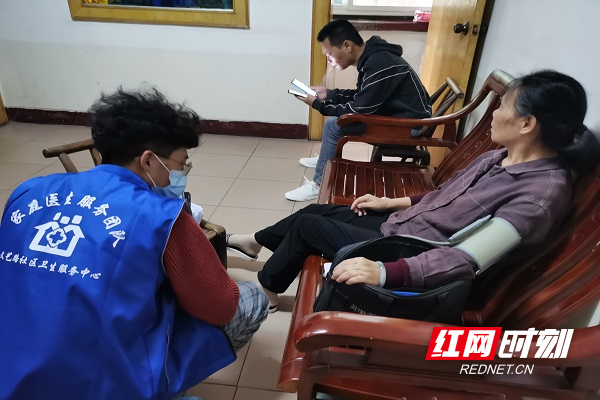 “谢谢!你们可是为我们解决了大问题了。”家住汽发宿舍的陈奶奶对上门服务的家庭医生说。原来近期长沙天气突变,气温骤降,陈奶奶的老伴胡嗲嗲没及时添衣就感冒发烧了,胡嗲嗲行动不便、儿女又在外地一时回不来,陈奶奶爬楼梯又气喘,可把她急坏了,好在家庭医生上门服务,才帮她解决了这个难题。家庭医生给胡嗲嗲测了体温、量了血压,买了感冒药,可算把体温降下来了。