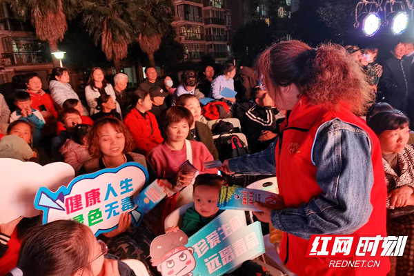 红网时刻长沙10月19日讯(通讯员 李林芳)为进一步提高辖区群众抵御毒品的能力,营造全民禁毒氛围,10月18日晚,长沙市天心区禁毒办联合金盆岭街道赤岭路社区,在金碧文华小区开展了“禁毒宣传进社区,禁毒知识入人心”禁毒专场活动。
