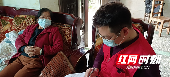 盛佳燚是长沙县黄兴会展经济区百名走访干部之一,负责万龙村三个组常住人口和流动人员的信息摸排。手拿疫情防控下户摸排明细表,盛佳燚从早上8点开始,每到一家都详细询问该住所所有人员核酸检测时间、是否全程接种疫苗、健康码状态、最近到访地等信息。