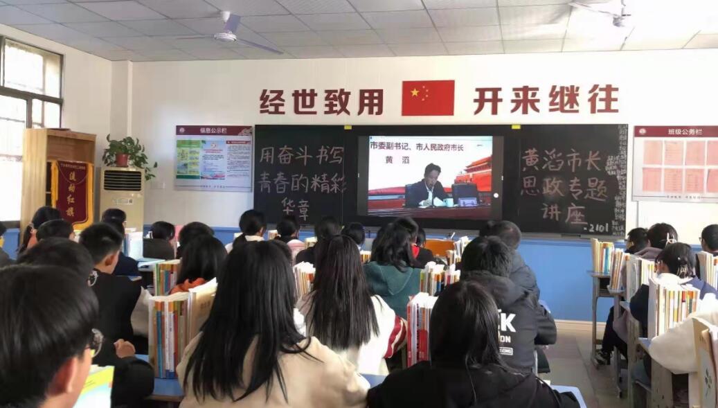 在讲课中,黄滔旁征博引,带领师生们一起重温了党的百年历史和宁乡的红色基因,还立足新时代,从宁乡的发展史和个人的成长史,阐述了宁乡当前发展的历史新机遇和学子们奉献、成长的新平台,循循善诱,谆谆教诲,号召大家勇担时代重任、绽放青春光彩,逐梦“工业强市、幸福宁乡”,追梦“建成省会副中心,挺进全国前十强”,圆梦“大国工匠”技术人才。