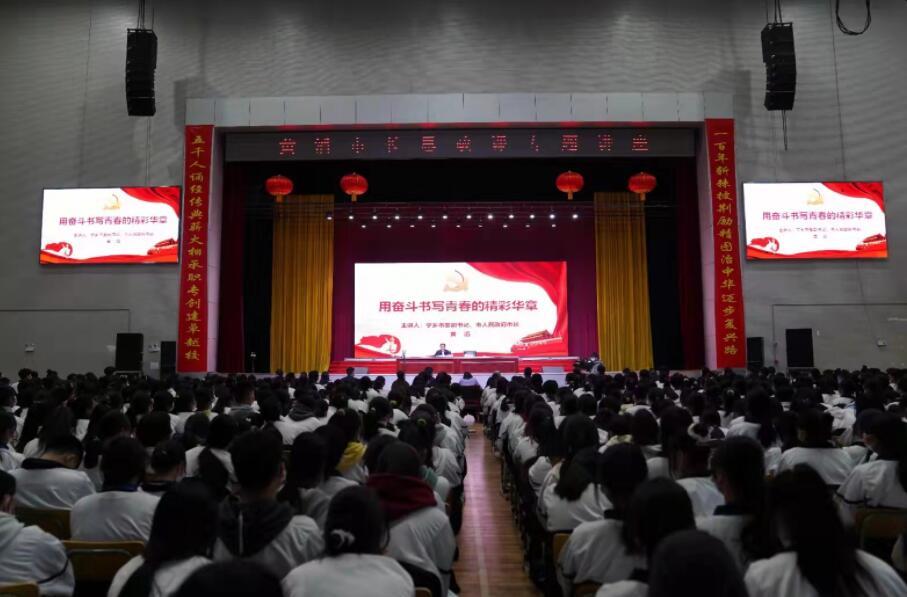 “今年最火爆的电影《长津湖》大家都看了没?这一段历史波澜壮阔,我们的先烈英勇无畏……”11月23日下午,宁乡市职业中专体育馆内座无虚席,市委副书记、市长黄滔以《用奋斗书写青春的精彩华章》为题,为在座3000名师生带来了一堂深入浅出、生动翔实的思政课,全市1.6万余名中等职业学校师生通过网络直播进行收看收听。副市长王辉参加活动。