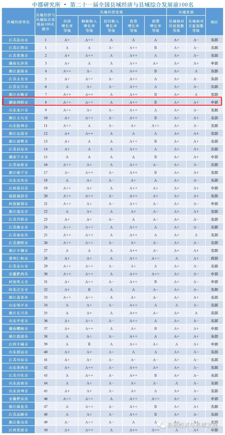 郡县治,天下安。12月6日,全国县域经济专业智库社会组织——中郡研究所完成并发布了《2021县域经济与县域发展监测评价报告》,揭晓第二十一届全国县域经济与县域综合发展前100名县市。浏阳再次攀高进位,县域经济与县域综合发展位列第8位,较去年再进一位。