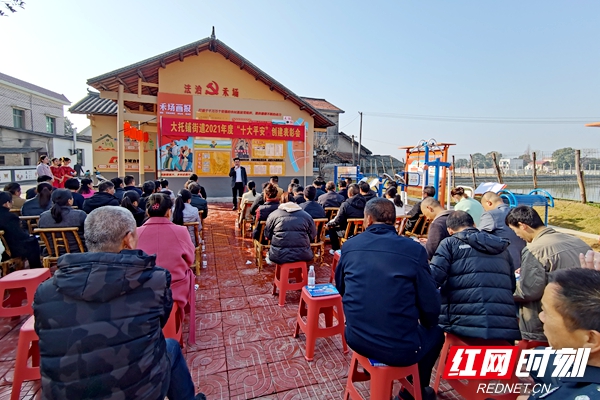 红网时刻长沙12月23日讯(记者 周昂 通讯员 刘炼)12月23日,长沙市天心区大托铺街道在香铺园“法治禾场”举办了2021年度街道“十大平安”创建表彰会,表彰先进,示范带动,推进平安创建工作向纵深发展。
