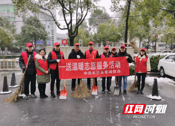 红网时刻长沙1月29日讯(通讯员 常红)受低温雨雪天气影响,1月29日长沙县普降大雪,为了保障居民群众安全出行,县委网信办第一时间组织办机关志愿者开展“扫雪除冰寒冬送温暖”志愿服务活动。此次扫雪除冰志愿服务活动,全体干部职工积极参与,充分发扬了“奉献、友爱、互助、进步”的志愿服务精神,以实际行动践行了“我为群众办实事”,为营造安全、有序、文明、畅通、洁净的县城环境贡献了自己一份力量。