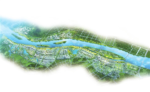 横跨一江两岸、坐拥山水洲城的望城区,成为一片充满希望的投资沃土,一个智造崛起的开放高地,一座宜居宜业的璀璨新城。图为“一江两岸”总体鸟瞰效果图。(本版图片由望城区委宣传部提供)