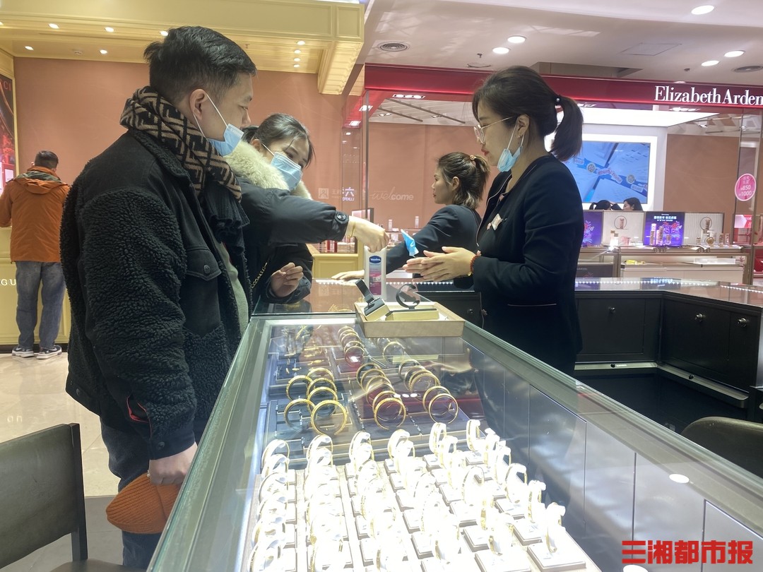 不仅仅是化妆品,珠宝也迎来热销。“情人节前大多数是来购买婚礼钻戒,或者金手镯、金项链这之类的。”王府井百货周大福专柜的销售人员周女士介绍,现在店内有活动,正价镶嵌铂金饰品一件打8.8折,两件打8.5折除此之外,计价黄金每克直减20元。