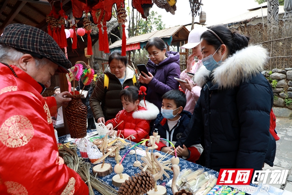 精致小巧的手工编织艺术品吸引了众多小朋友的目光。