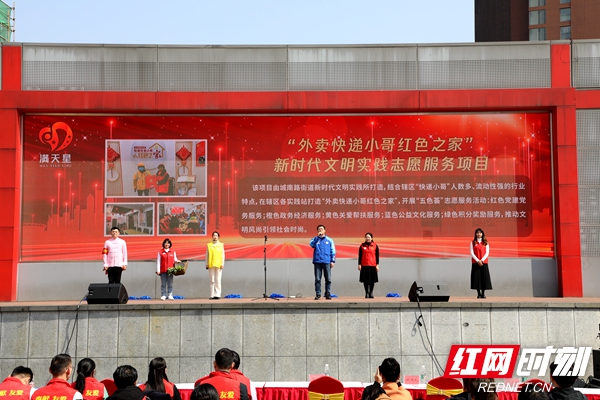 首批项目重点选取了6个极具代表性的领域,涵盖理论宣讲、文化服务、乡村振兴、文明新风宣传、新业态从业者关怀等。如“快递外卖红色之家”项目依托各社区新时代文明实践站、党群服务中心、楼宇,让快递员不仅能体验到免费充电、歇脚、喝水等服务,还能享受到红色党建、橙色经济、黄色关爱、蓝色公益、绿色积分等“五色荟”志愿服务,推动文明风尚引领社会时尚。“小小菜农项目”由新村阳光志愿服务中心携手长沙理工大学等爱心志愿团队共同打造,自2017年启动以来,共吸引2000余名青少年、300多名大学生积极参与,帮扶助销农副产品4.6万斤,通过扶残助困,讲好乡村振兴与志愿服务故事。随后,活动还对天心区“满天星”行动志愿服务示范点进行了集中授牌。