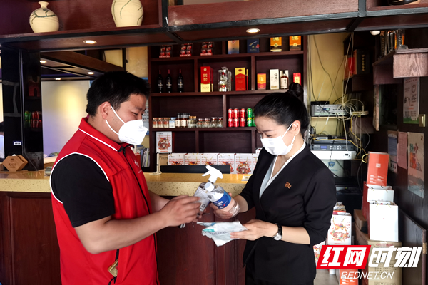 “店长好,你们打算重新开业吧,这是社区送的酒精、消毒液和口罩,进店一定要扫‘场所码’、测温不能放松啊。”4月10日上午,天剑社区网格员张彬一行逐户上门,提醒重新营业的企业门店要严格落实限流、通风消杀、扫“场所码”、测体温、戴口罩等疫情防控措施。