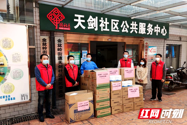 长沙市民政局向天剑社区捐赠防疫物资。