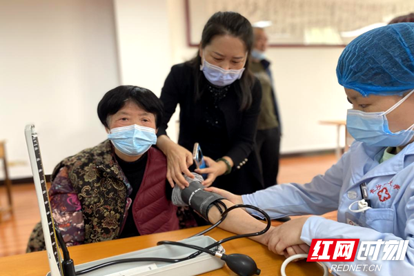 詹莉云协助老年人进行60岁疫苗接种前的体检工作。