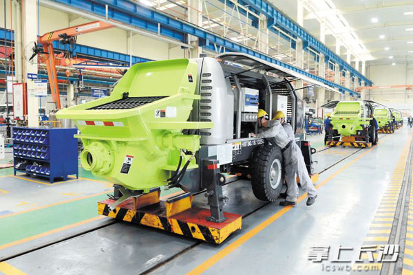 中联重科在白俄罗斯的中白工业园,已于今年4月正式开工建设,投产后年销售收入将达3亿美元。图为繁忙的中联重科生产车间。 资料图片